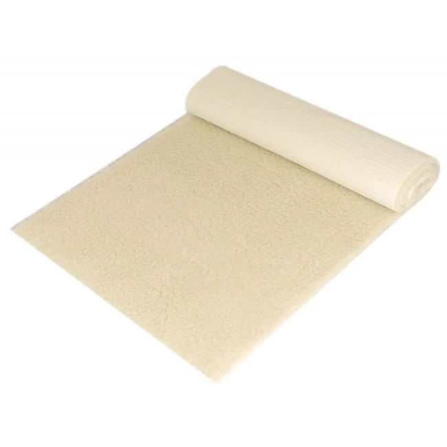 Den er lavet af 100% ren uld og har en skridsikker bund i naturlatex.